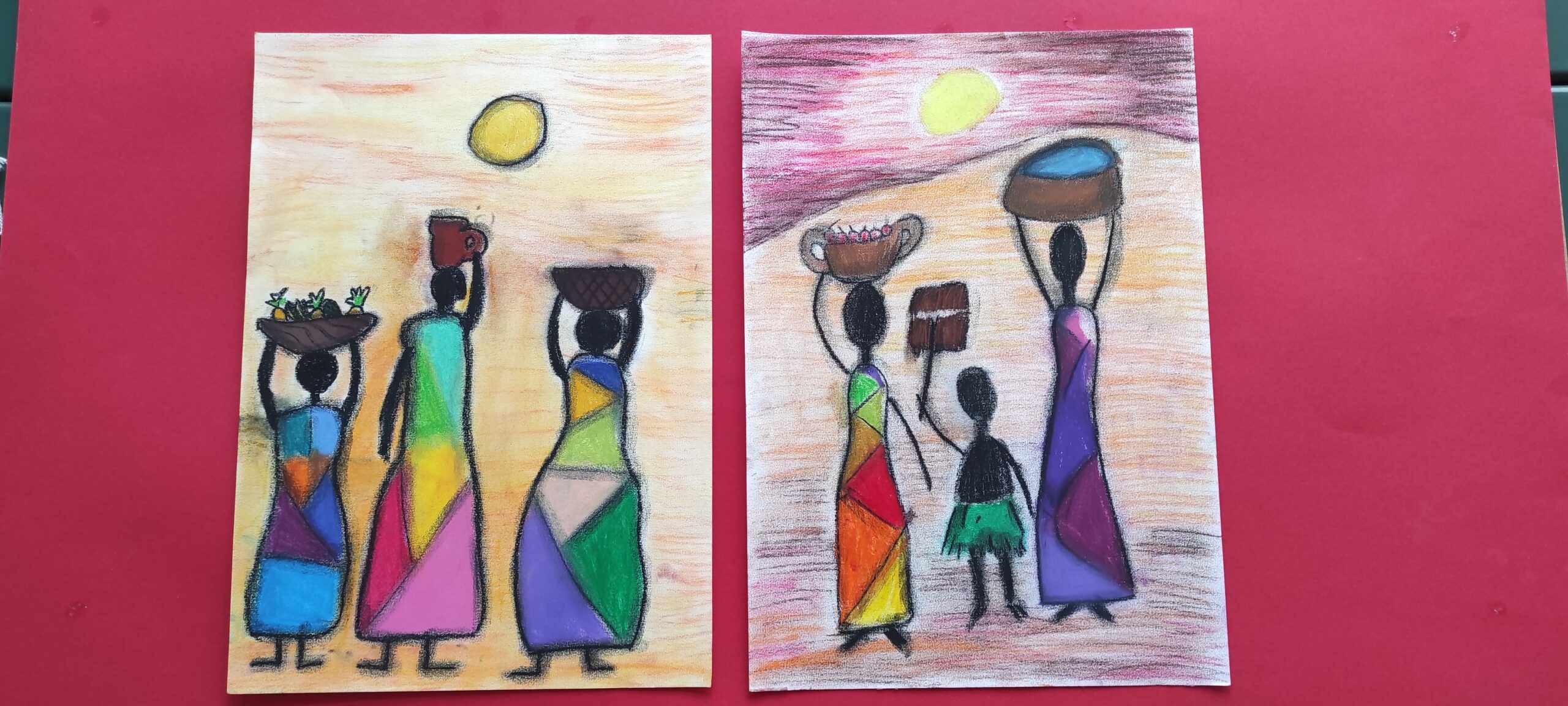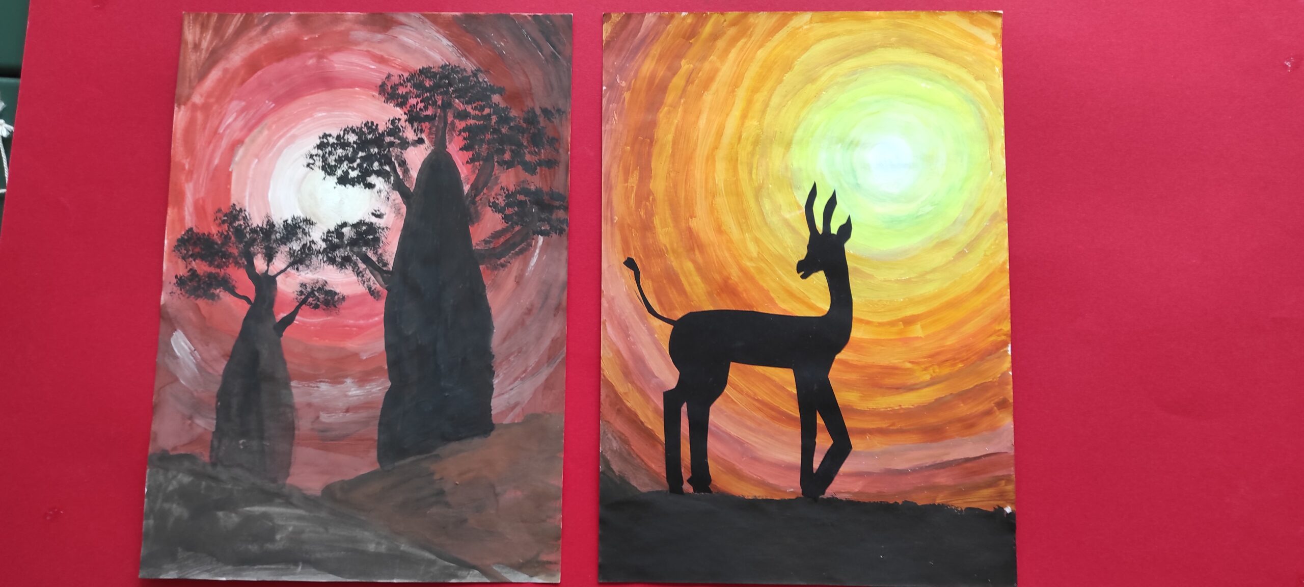 Tolimas Afrikos žemynas, jo nuostabi gamta, ten gyvenantys gyvūnai, žmonės, juos supanti aplinka… Visa tai galima pamatyti spalvinguose dailės būrelio mokinių piešiniuose, parodoje ,, Afrikos spalvos “.