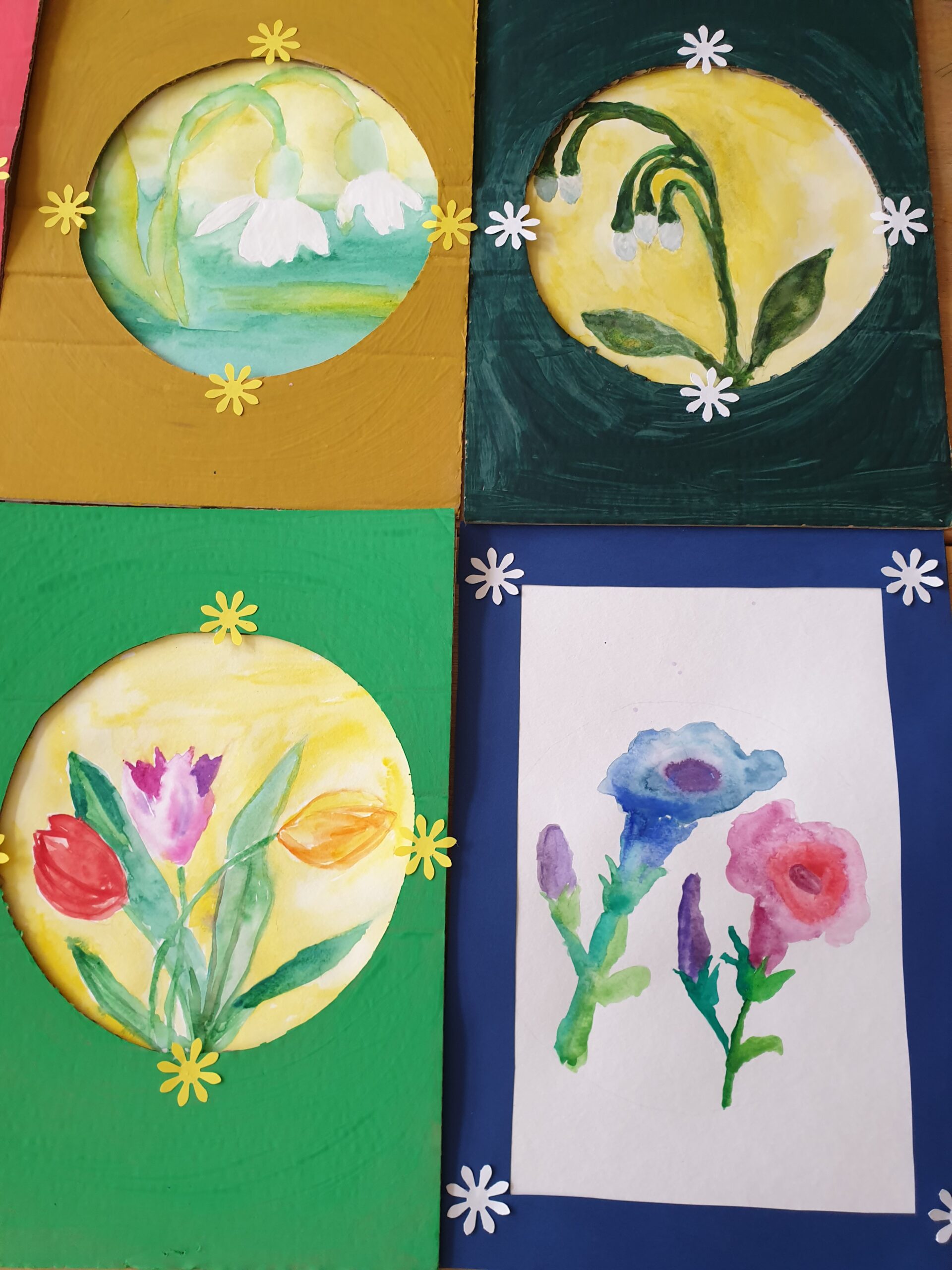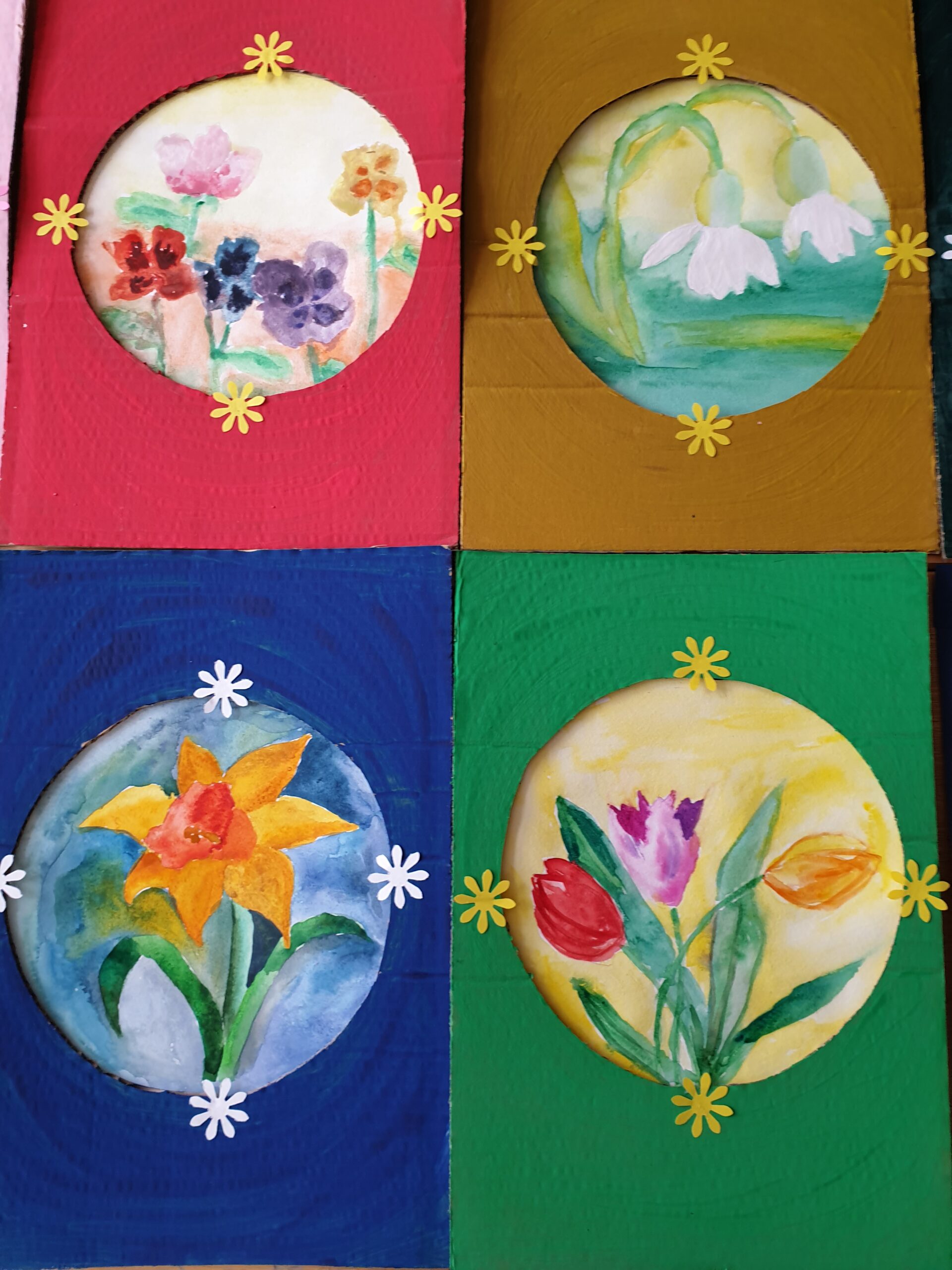 Gamtoje galima rasti priemonių, pagerinančių emocinę būklę. Vienos tokių yra gėlės, kurios sukelia teigiamas emocijas, pakylėja, padeda pajusti gyvenimo grožį. Dailės terapijos būrelio „Jausmai ir spalvos“ mokiniai pavasarinių gėlių grožį, pastelinėmis spalvomis perteikė popieriuje.