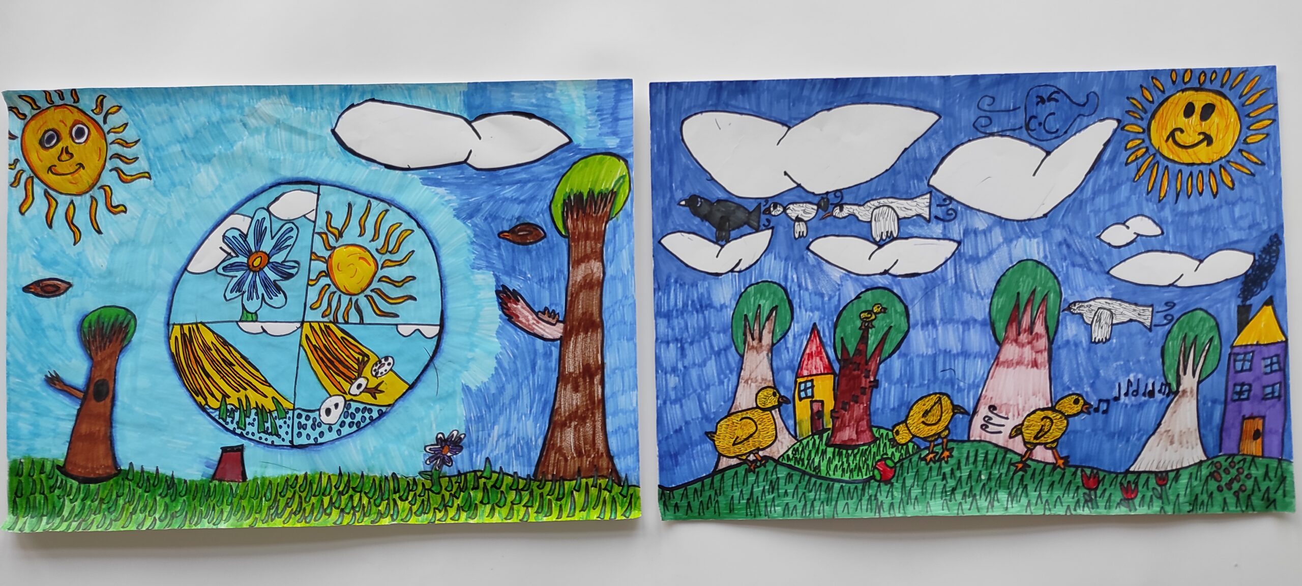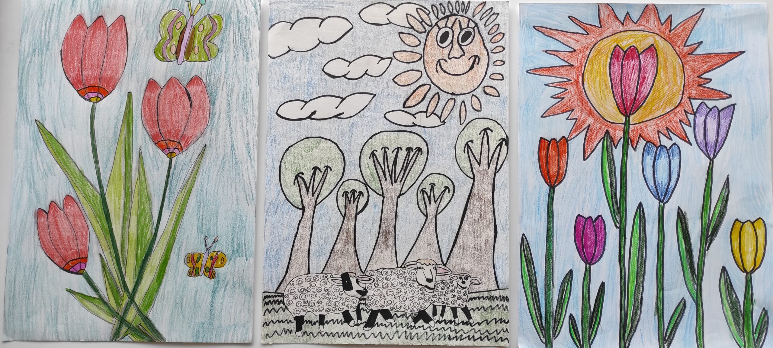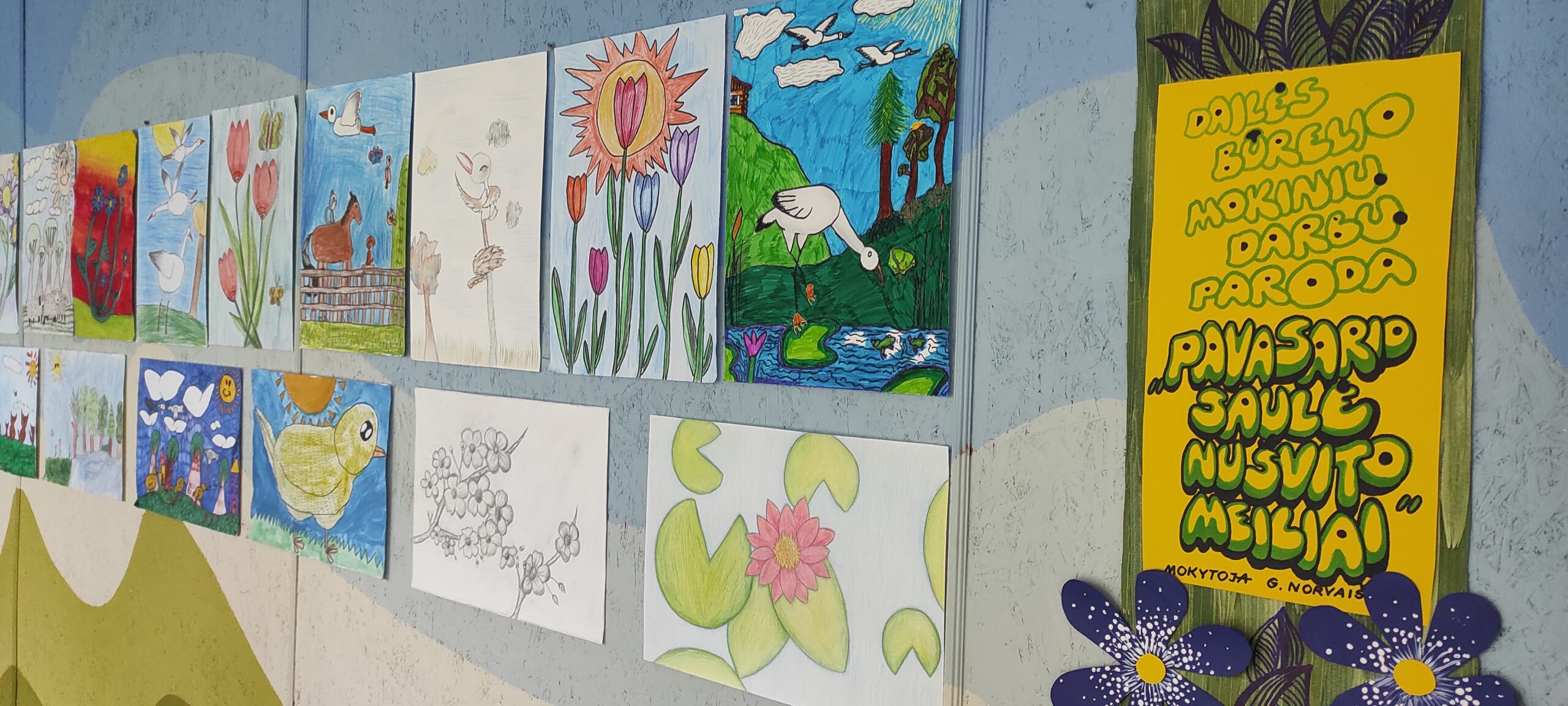 Pavasarį vis dažniau pasirodanti saulė žadina gamtą iš gilaus miego…pradedantys žaliuoti medžiai, pirmosios gėlės, paukščių čiulbėjimas, šiltesni orai. Šios nuotaikos įkvėpti dailės būrelio mokiniai surengė piešinių parodą ,,Pavasario saulė nušvito meiliai “. Mokytoja G. Norvaišienė.